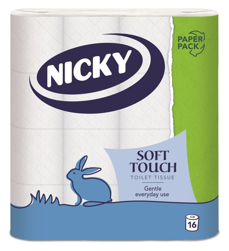 Nicky Soft Touch Toilet Tissue, 2-Ply, 16 Rolls Paper Pack