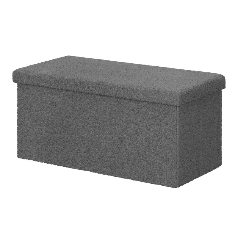 eSituro Faltbare Sitzbank mit Deckel, Sitz, Fußablage, Aufbewahrungstruhe, gepolstert mit Plüschfleece, 80 l, Tragkraft 300 kg, 76 x 37 x 38 cm, Dunkelgrau