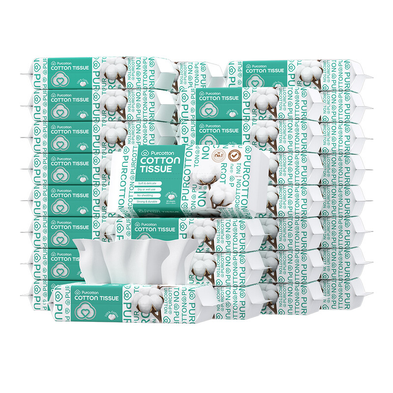 Purcotton Cotton Facial Tissue 2160 sheets 60 sheets*36 packs First choice for stocking up Soft and skin-friendly