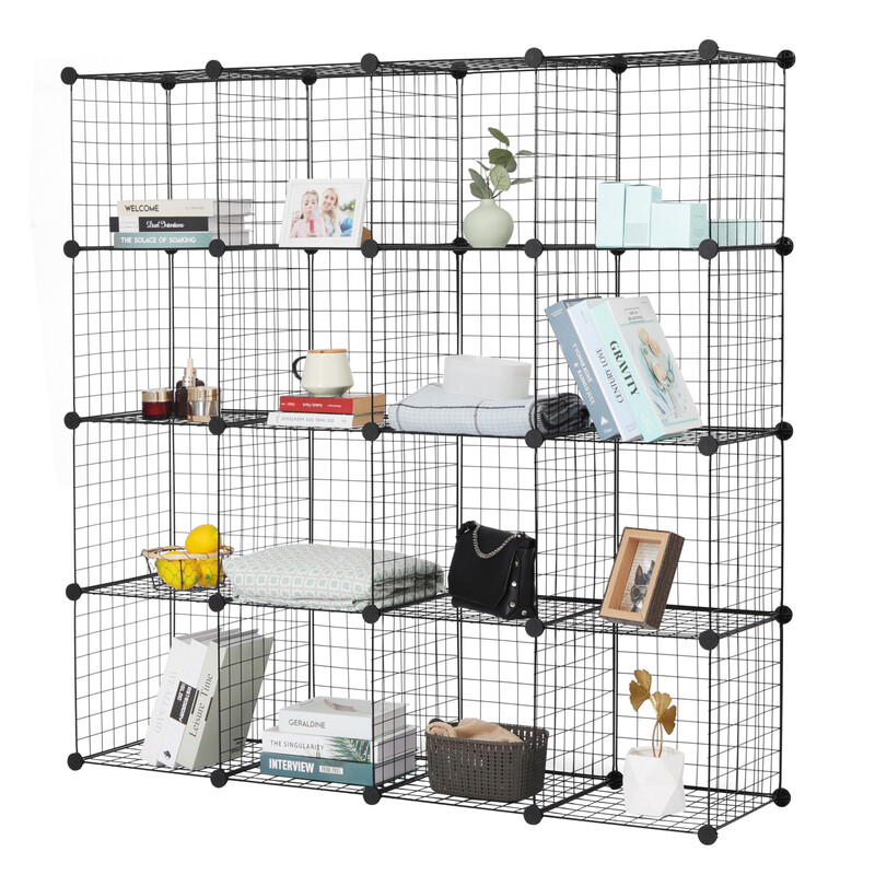 WOLTU DIY Würfelregal, Gitterregal Design für Aufbewahrung, Metall Kleiderschrank, Schwarz, 16 Fächer, SR0123sz-2