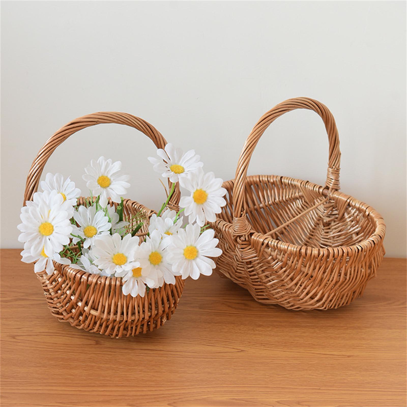 Portable PP Rattan Baskets Picnic Storage Basket Retro Wicker Suitcase Woven Hand Gift Box Sundries Cosmetic Organizer Boxs white