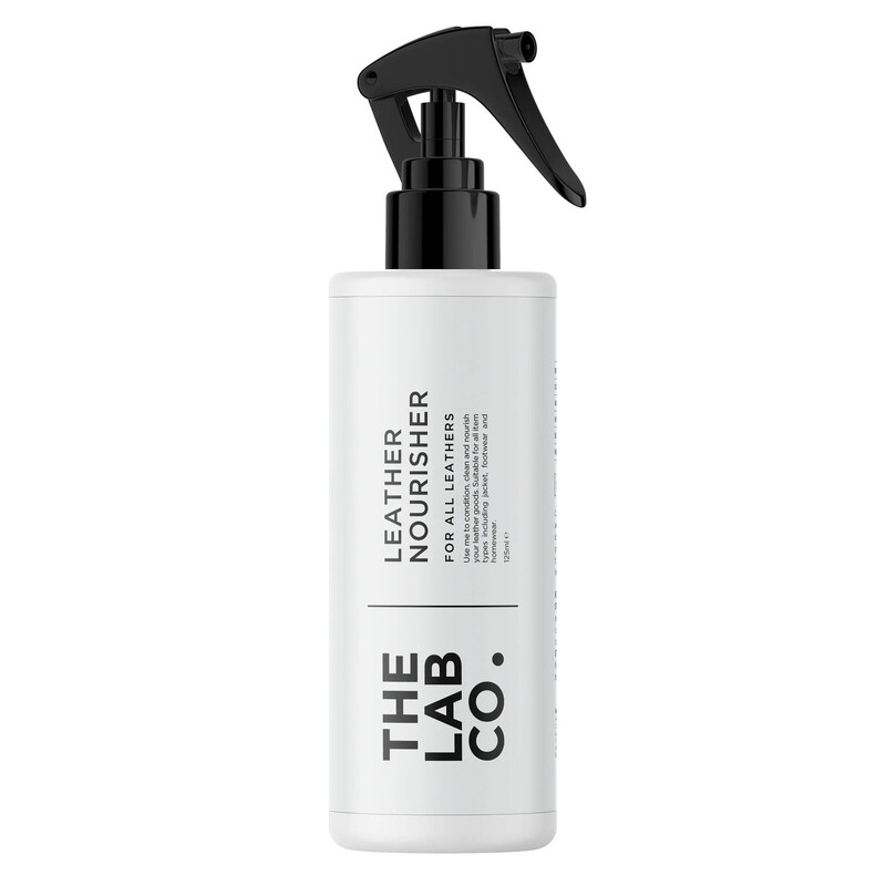 The Lab Co. Leather Nourisher 125ml. A multi-purpose cleaner to condition and nourish leather handbags, jackets, shoes, trainers and sneakers. Contains beeswax.