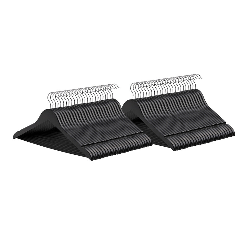 SONGMICSHOME Solid Wood Hanger, Set of 50, with Shoulder Grooves, for Suits, Shirts, Coats, Black and Silver