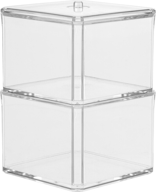 5five Selena Acrylaat Wattenbox Set - 2 stuks, Transparant, 9,5 x 9,5 x 16 cm