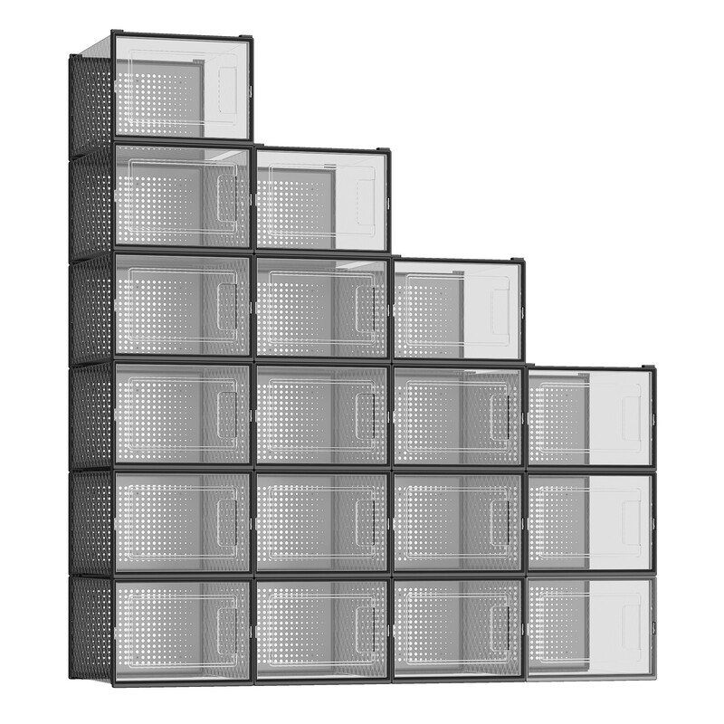SONGMICSHOME Schuhboxen, 8er Set, aus Kunststoff, faltbar, stapelbar, für Schuhe bis Größe 46, transparent-schwarz