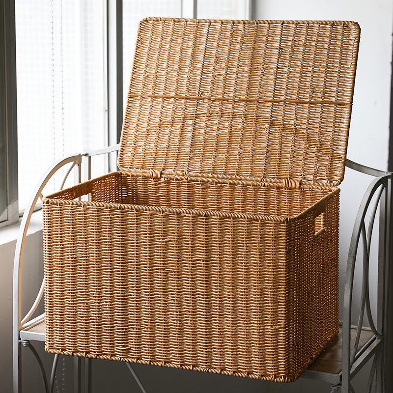 Extra Large Wicker Storage Box with Lid - Imitation Wicker for Clothes and Moving Storage