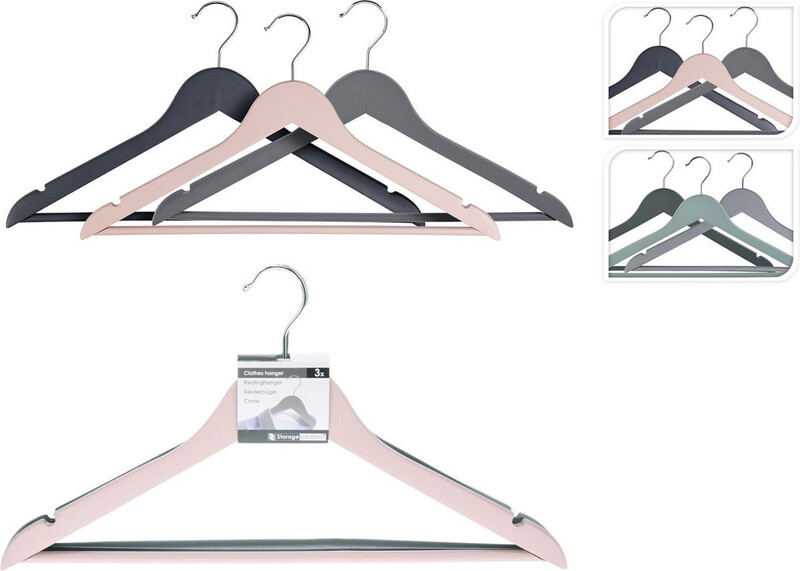 Excellent Houseware Houten kledinghanger set - 3 stuks, Assortiment kleuren