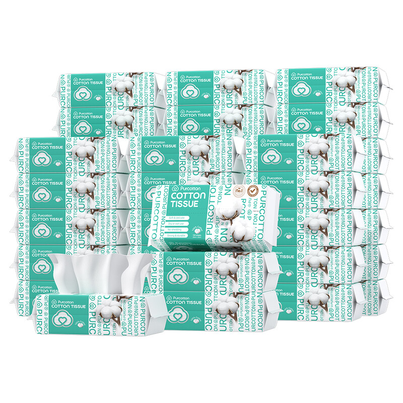 Purcotton Cotton Facial Tissue 4000 sheets 100 sheets*40 packs Extra-large capacity family pack Economical and practical