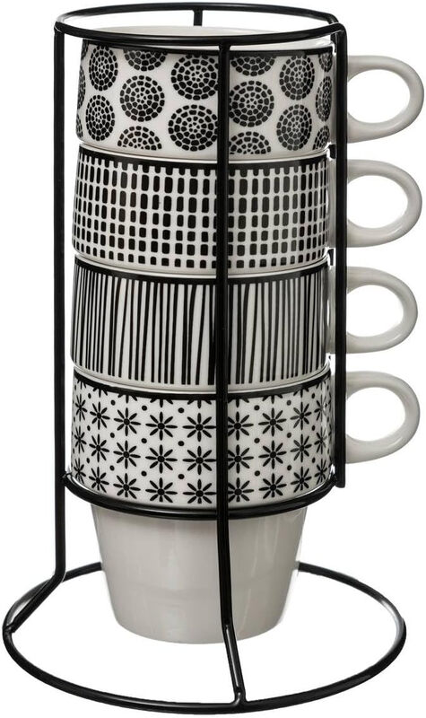 Secret de Gourmet Boheemse Mokhouder met 4 Mokken - 26 cl, Wit-Zwart