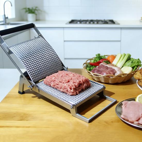 Rostfritt Stål Manuell Köttmörjare Patty-formare Klämma på Verktyg för Att Platta ut Kyckling Nötkött Viktig Köksgadget för Hemmabruk BBQ