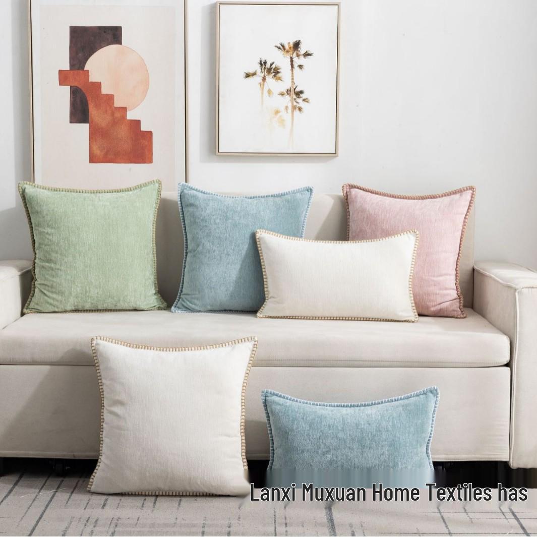 Kussensloop met chenille rand: Noordse effen kleur bank & erker kussen