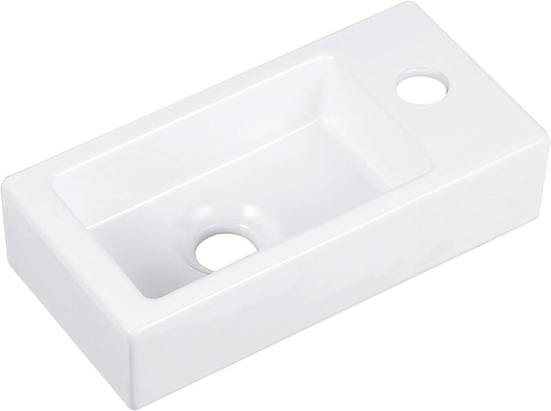 DeerValley DV-1V081R Badezimmerwaschbecken aus Keramik zur Wandmontage, Kleines Badezimmer, Weißes rechteckiges Keramik Waschbecken Klein (rechte Hand)