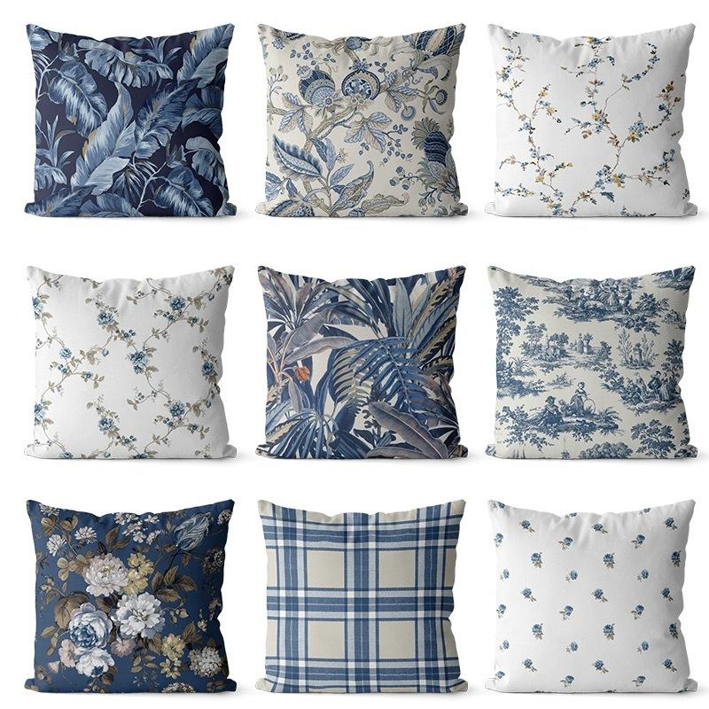 Amerikaans Blauw Retro Katoen Linnen Enkelzijdige Kussensloop Bank Woonkamer Slaapkamer Kussen Kussen Thuis Taillekussen