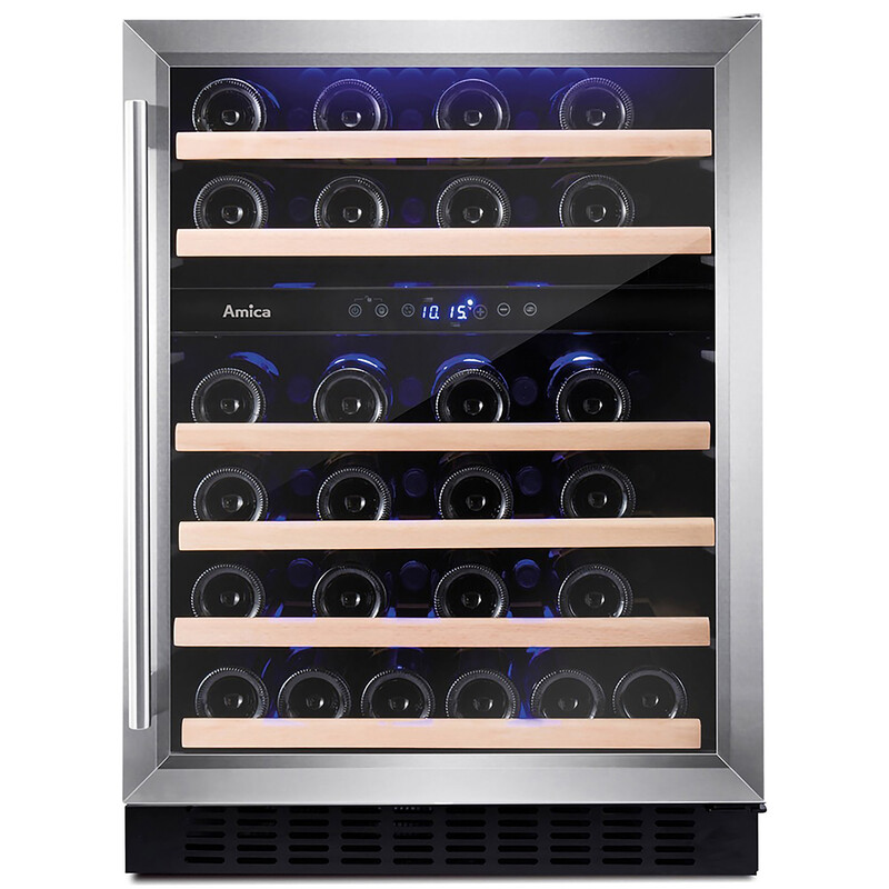 Amica AWC600SS 59.5 cm Dual-Zone Wine Refrigerator, 46 Bottles Capacity, Stainless Steel
