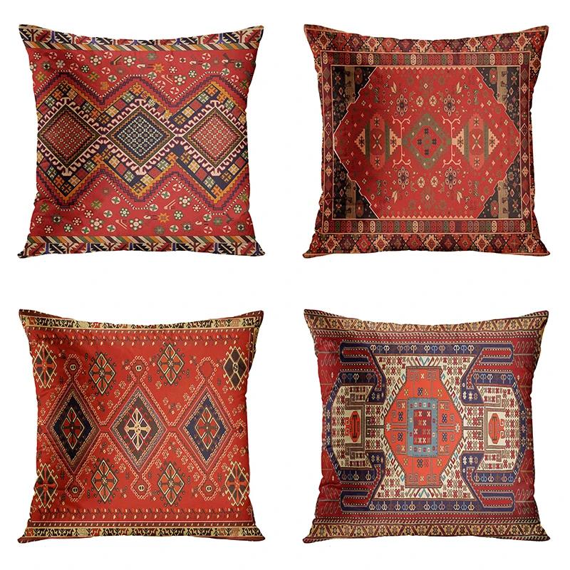 Rode Marokkaanse Etnische Korte Pluche Kussensloop Woonkamer Slaapkamer Bank Kussenhoes Woondecoratie 40x40 45x45 50x50 60x60