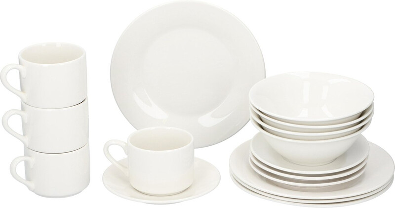 Alpina steengoed ontbijtset - 16 stuks, wit
