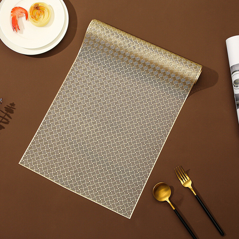 Rechteckige PVC-Tischsets mit Perforation, rutschfester Tischläufer, hitzebeständiges dekoratives Tischset, wasserdicht und abwaschbar, Tischdekoration für den Esstisch (gold), 4 Stück