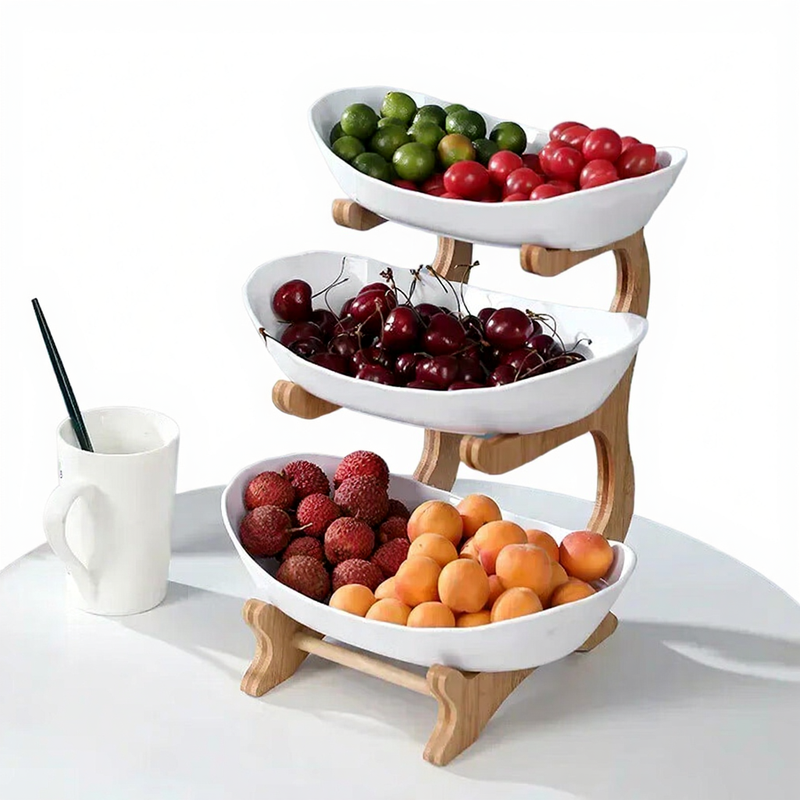 Assiette à fruits en plastique Huacan 3 niveaux pour collations, plateau de fruits secs, stand pour bonbons et g?teaux blanc