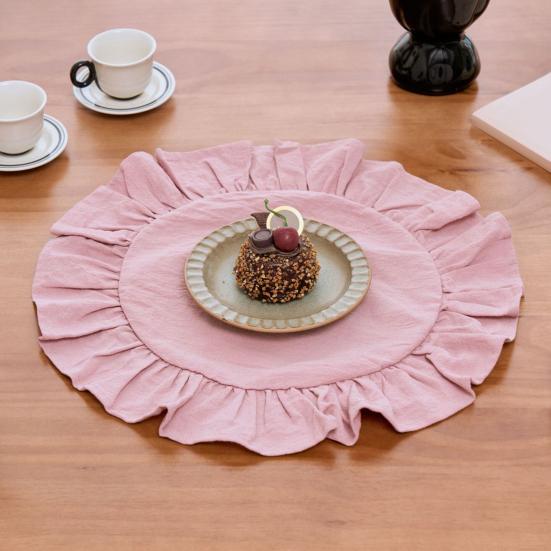 Rustieke Tafelmat Effen Kleur Ronde Vorm Gerimpelde Rand Afternoon Tea Tafelmat Zacht Gewassen Katoen Tafelmat Eetkamer Keuken Feest Rustieke Tafeldec