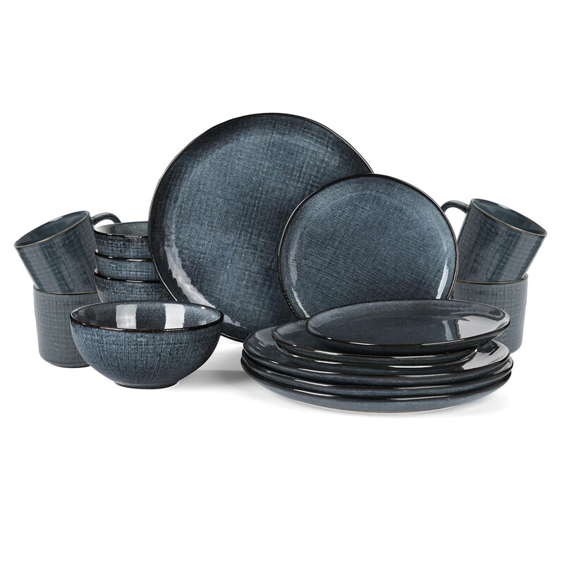 Richmount 16-teiliges Steinzeug-Geschirrset - Marineblau - mit Tassen, Tellern und Schalen