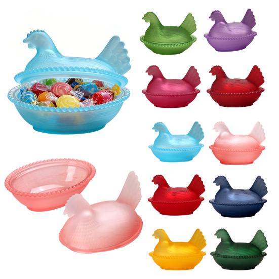Glas Kyckling Godisskål Hönan i Boet Godisskål med Lock Söt Snacksbål gul