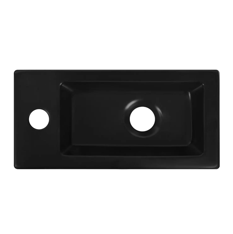 DeerValley Small Bathroom Sink Guest Toilet Sink Black Matt Rectangular Ceramic Hanging for Bathroom Sink Hand Sink, Toilet, 365 x 180 x 90 mm Tap Left
