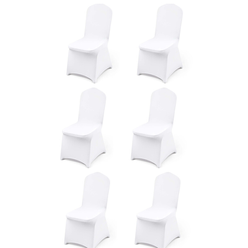 Housses de Chaise Pliantes Blanches en Spandex, Housses Extensibles en Polyester pour Mariage, Fête et Salle à Manger – Design à Devant Plat, Taille Universelle, Lot de 6
