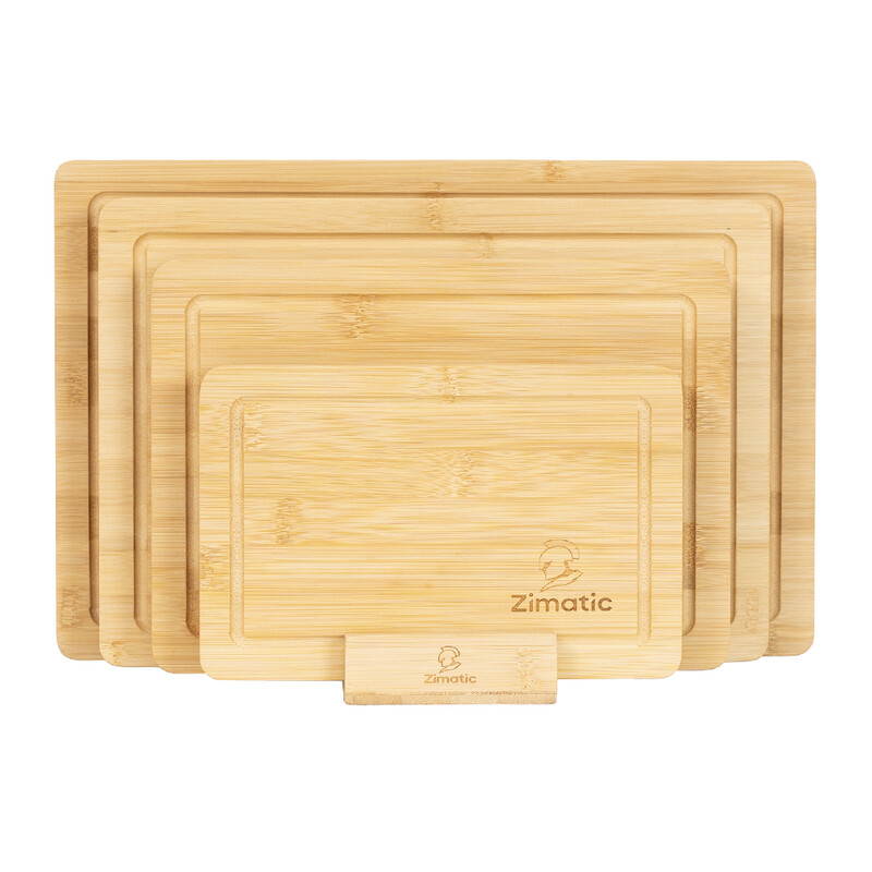 Zimatic 4-Piece Bamboo Chopping Board Set with Non-Slip Holder, Cutting Board as Kitchen Board, Better Than Wooden Chopping Board for Kitchen, Cheese or Fruit with Gift Box