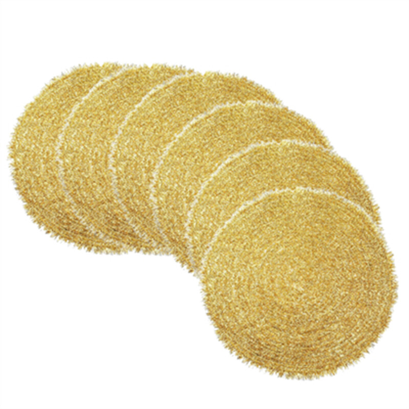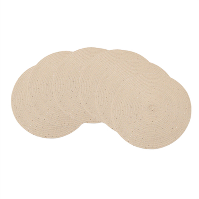 Polyester sequin placemat Light gold,Woven Round 38cm Placemats 6 Pieces Heat Insulation Non Slip Braided Cotton Dinner Table Mats Large Washable Place Mat for Kitchen Dining Table