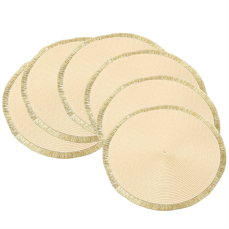 White Label 6-piece set, PP-woven bright thread tassel placemat Beige + gold tassel,round 38cm, hand-woven with PP material, perfect for wiping and cleaning, and shining at holiday parties and weddings