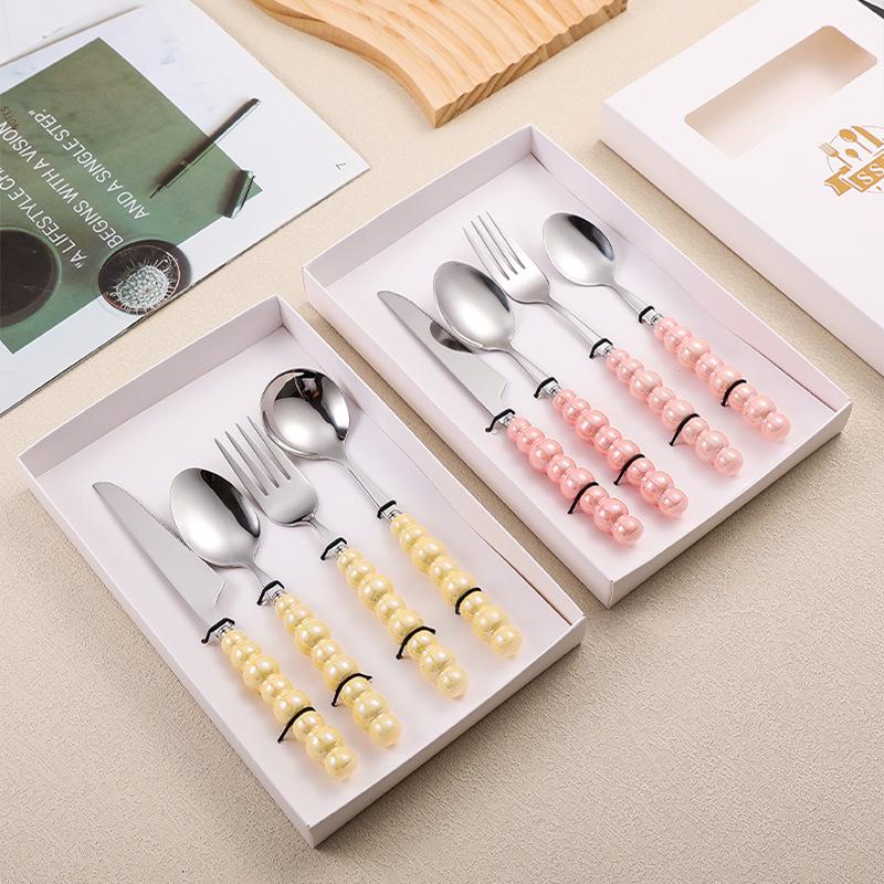 304 Stainless Steel Cutlery Set with Creative Pearl Handles: Steak Knife, Fork, and Dessert Spoon