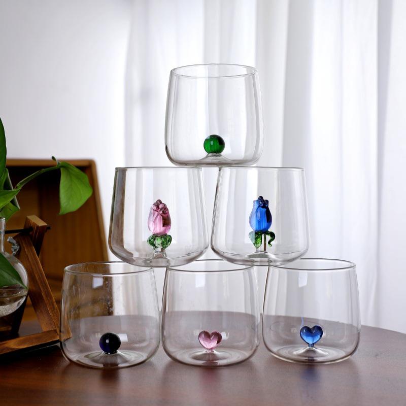 3D Decoratief Glazen Kopje voor Whiskey, Cocktails, Koffie en Sap - Transparant Enkellaags Ontwerp