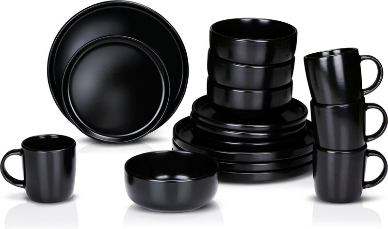Alpina servies set keramiek - 16 stuks, zwart