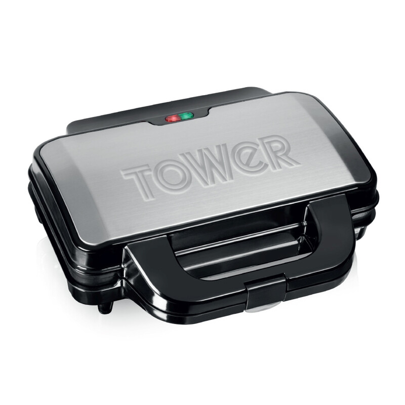 Tower T27013 Deep Fill Sandwich Maker with Extra Deep and Easy to Clean Non-Stick Plates, Automatic Temperature Control, 900W, Silver and Black