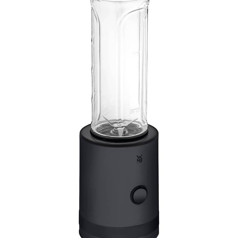 WMF Küchenminis Smoothie To-Go Mini Stand Küchenmixer mit zwei Mix/Trinkbehältern, 0,6 l, Hochleistungsmixer, 300 W, mattes Edelstahlgehäuse, schwarz