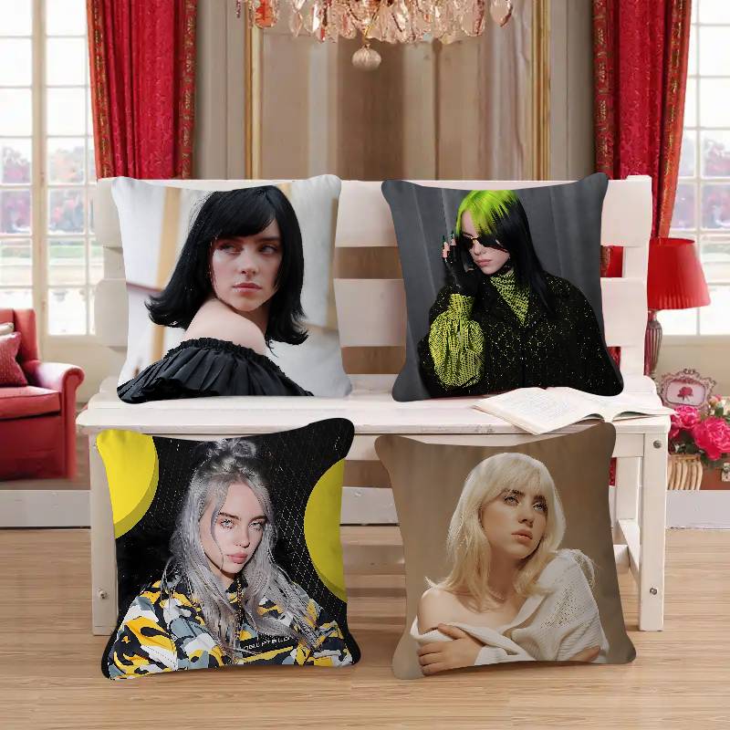 Zanger B-Billie-Eilish Kussen Anime Kussen Bank Bed Hoofdkussenhoes Kussenhoes 45x45 Cm Mode