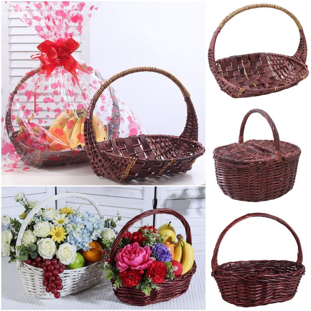 Bruin Wit Handvat Weefmand Ovaal Gevlochten Mand Mand met Handvat Groenten Fruit