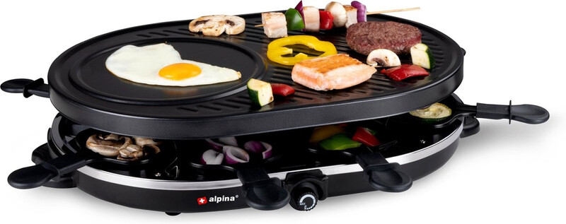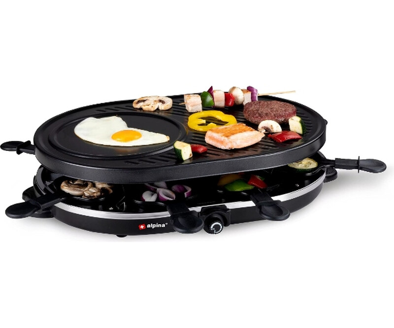 Alpina No Series - 8-Personen Gourmet-Set - Grillplatte, Pfannen, Spatel, 1200W Leistung