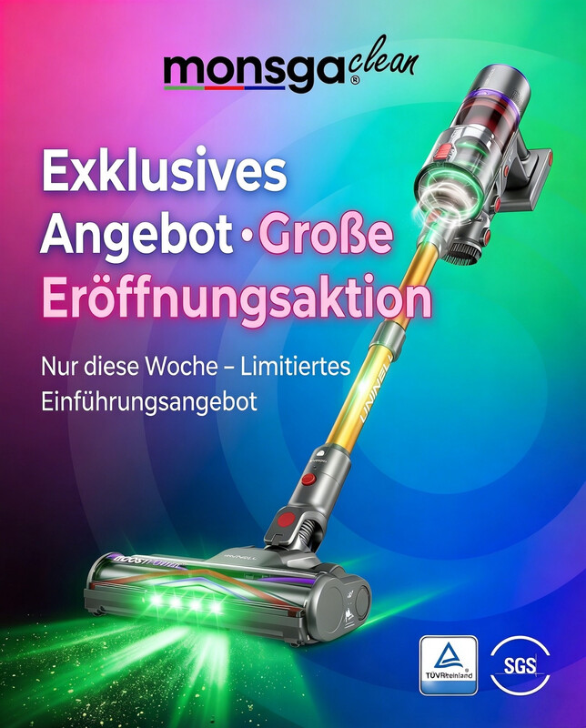 OMESER Kabelloser Staubsauger 40KPa/50Min Leichter Stielstaubsauger mit bürstenlosem Motor, LED-Display, selbststehend