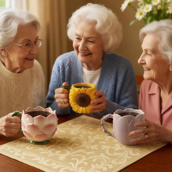 Blumen-Kaffeetasse mit großem Fassungsvermögen für Tee, Milch, Wasser, Blumenform-Griff, Hitzebeständiger Trinkbecher, Dekoration