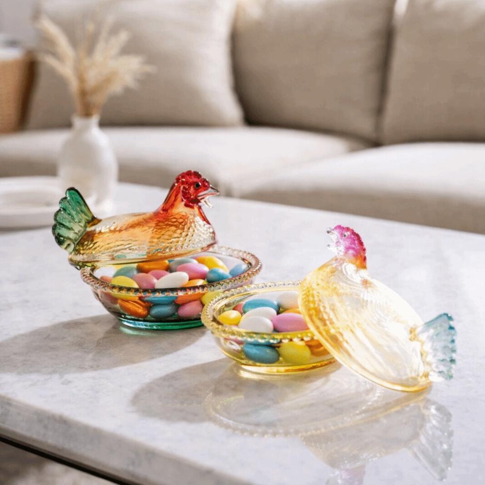 Krystallglass Godteriboks Høne på rede Godterikrukker med lokk Godteriskål Dekket Borddekorasjoner Desserttallerken Gave Rav