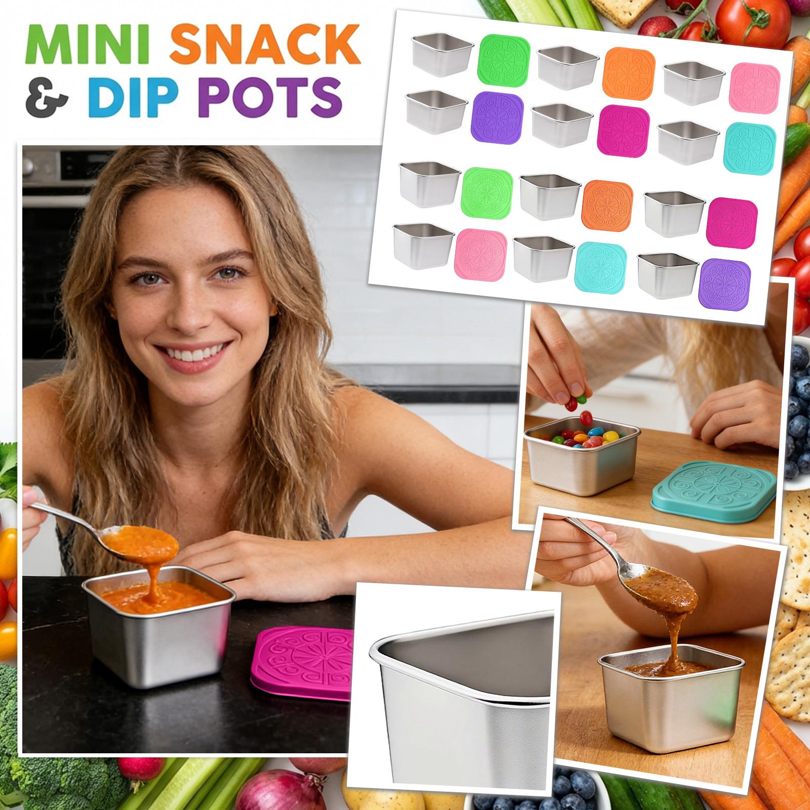 Stainless Steel Snack Container Set - Airtight Silicone Lid With Printed Design Containers, Multi-Use Food Storage For Dips, Snacks