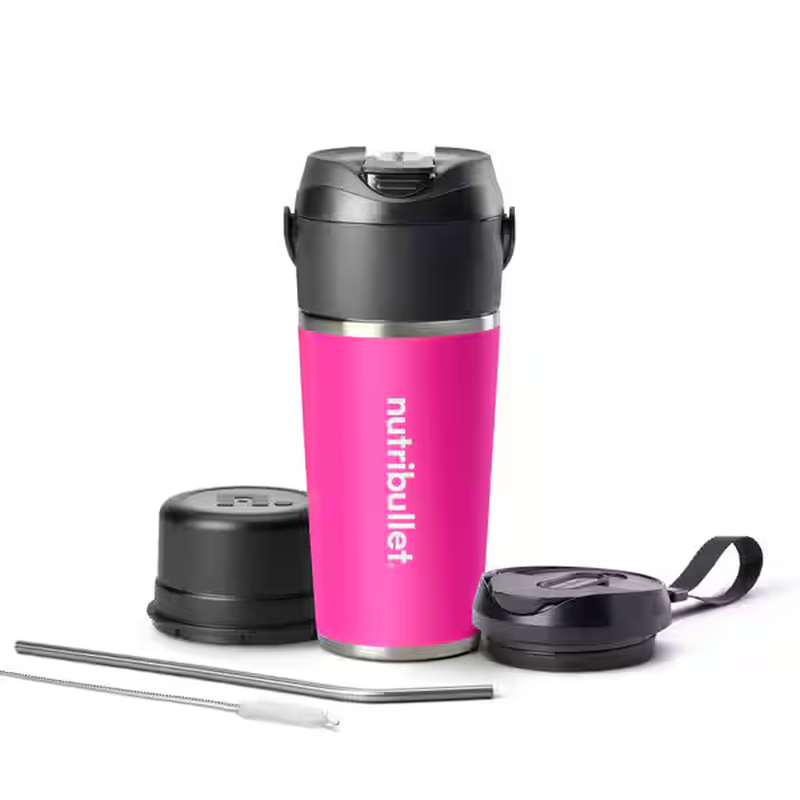 nutribullet® Flip NBP016BP, tragbarer Mixer mit isoliertem Edelstahl Thermobecher (590 ml), wiederaufladbar für 14+ Mixvorgänge, hält Getränke 24 Stunden kalt, Eiscrusher, 2-in-1 Mini Mixer to-go, USB-C-Ladefunktion, Magenta Pink