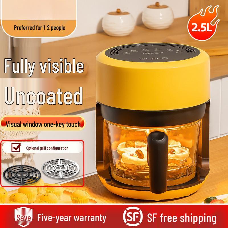 Lwell Transparent Glass Mini Air Fryer for 1-2 People - Oil-Free Electric Fryer for French Fries