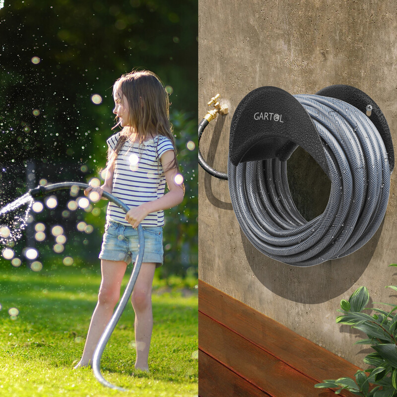 Flora Guard Support mural pour tuyau en acier au carbone avec vis et buse - Noir