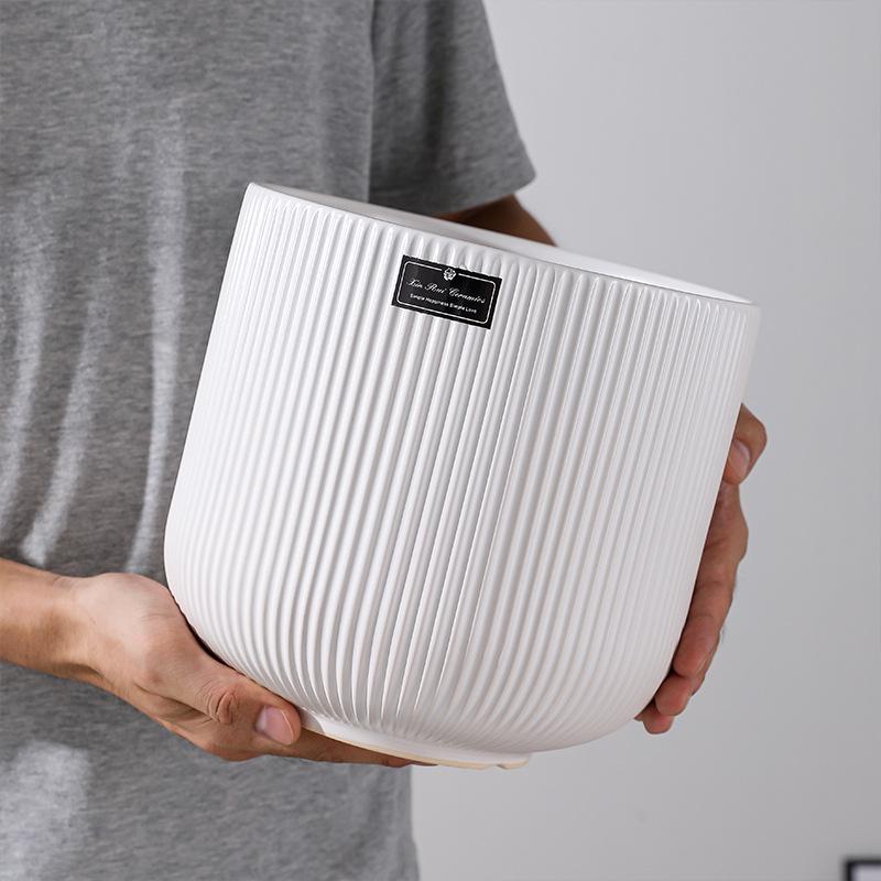 Elegancka Biała Ceramiczna Doniczka do Salonu – Duża Średnica dla Phalaenopsis i Sansevierii