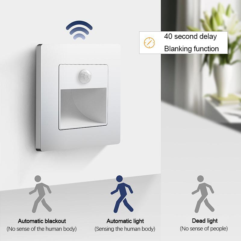 Enkel LED-vegglampe med intelligent sensor Nattlys Innfelt Innendørs LED-trinnlys for Gang Trapperom Dekorasjonsbelysning