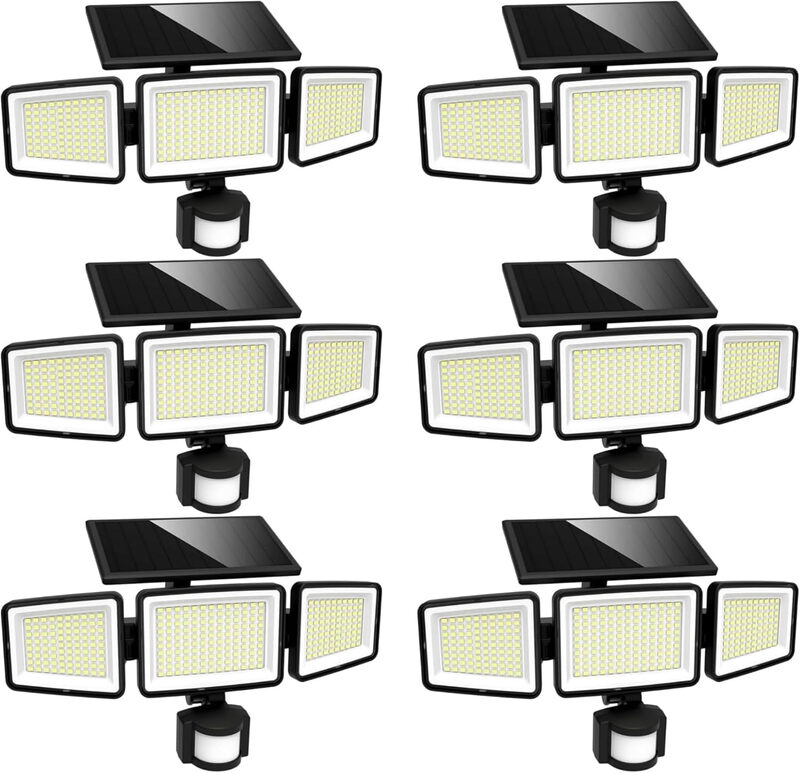 UME Solar Outdoor Lights 302 LED 3000LM, IP65 Waterproof Motion Sensor Outdoor Lights, 3 Heads Solar Security Flood Lights 270 Wide Lighting Angle with 3 Modes for Garden Patio Yard - 6 Pack