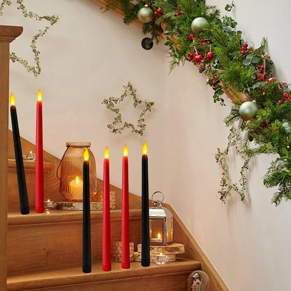 6 stk LED Flameless Taper Lang Lysestake Lampe Batteridrevet for Hjem Middagsbord Fest Bryllup Dekorasjon (inkluderer IKKE batteri) Rød