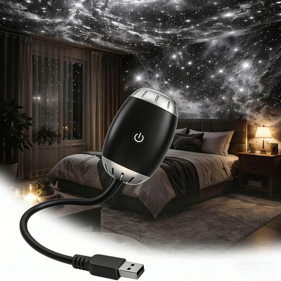 Stjernehimmel Prosjektor Nattlys med Justerbar Lysstyrke 360 Graders Rotasjon Enkel Berøringskontroll Lampe USB Oppladbar Soverom Stemningsbelysning